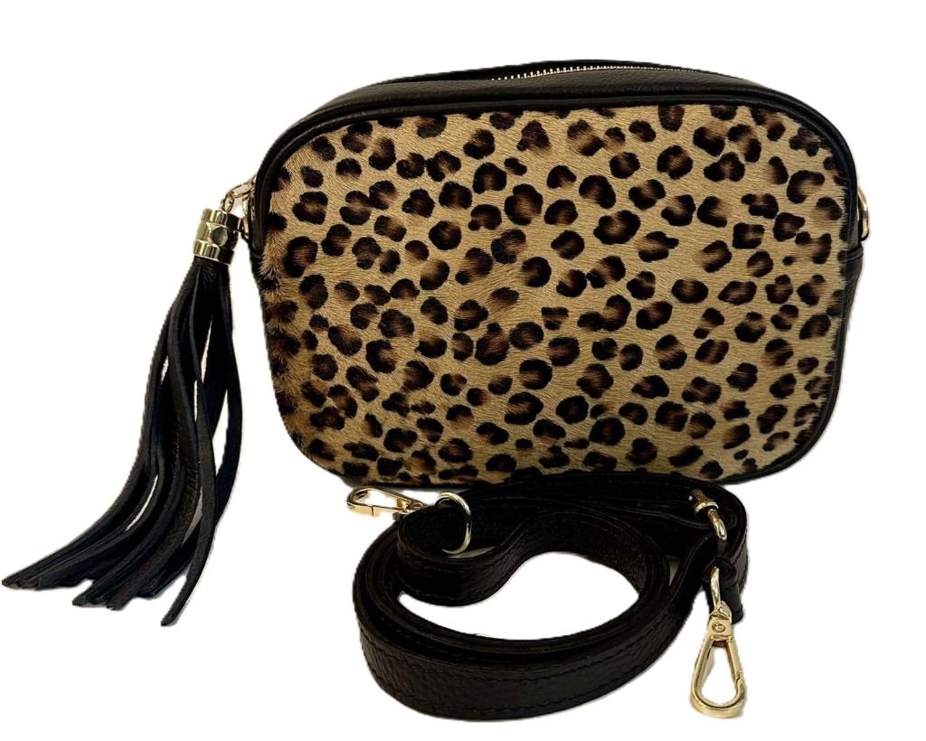 Valódi bőr- sportosan elegáns, állatmintás átvetős bőrtáska.